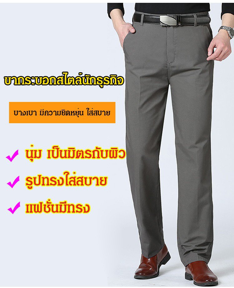 กางเกงขายาวผู้ชาย ทรงขากระบอก เอวสูง